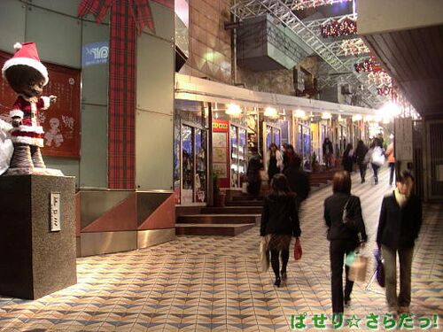 <お散歩日2005/12/3> 新宿ミロードのモザイク通りのクリスマス♪朝の景色と違って人も多いし、きらびやかな雰囲気♪お店は、ほとんど閉店時間になってます。