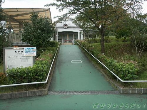 <お散歩日:2006/9/28:航空写真> 3っつ目の施設はUFO♪ぐるぐる周りながら展望を楽しめる。 UFO入口 目の前の物体が着地中?のUFO。 UFOから見た狭山湖 狭山湖(山口貯水池)の景色もばっちし見える。 UFOから見たインボイスドーム 西武の…