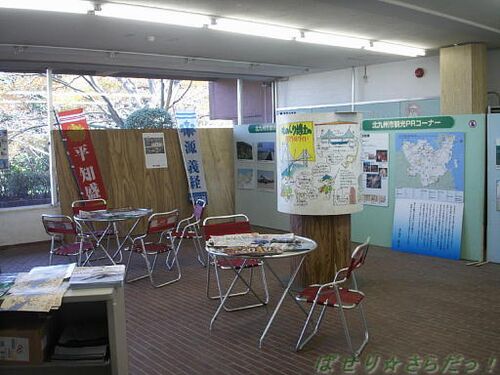 <お散歩日:2006/11/12:航空写真> めかりパーキングエリアは、一般道の方にも駐車場があって双方の休憩施設を利用できるの♪ 一般道側無料休憩施設 観光パンフレットがこれでもか~ってくらい置いてある。利用は無料で隣接してコーヒーショップもあるが、…