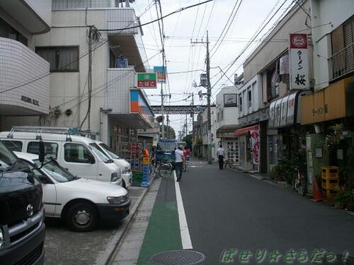 <お散歩日:2007/6/30:航空写真> この日は高円寺~中野まで時間調整のお散歩♪ 線路北側の通り 自動車はこの路地裏を通るには複雑な経路を通らないと行けないので少ない。古びた住宅街といった感じ。 年中休み つぶれたビデオレンタル店。 横路 住宅街へと…