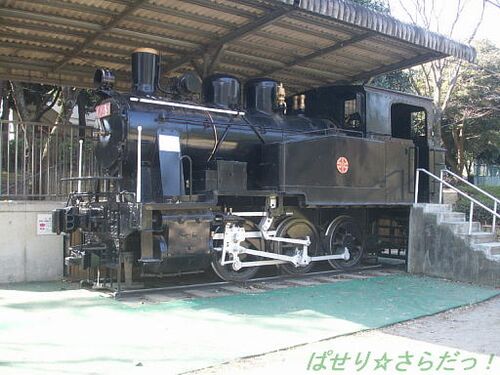 <お散歩日:2009/2/10> 千葉公園のちょっと寄り道散歩♪近いとなかなかお散歩しないんだな。。。 機関車を斜め前から 3軸駆動式のシンプルな機関車。きれいに保存されていて子供の頃からあまり変わっていない。プラットホームは新しいようだ。 機関車の前…