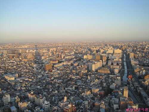 <お散歩日:2013/3/12> 31階と30階スカイツリービューフロアからの展望。方角的には北・東方向となる。他の方角はレストランでしか展望することは出来ない。 東方向・横十間側の方向 低層・中層の住宅がある方向。東京スカイツリーの陰も見える。 曳舟…
