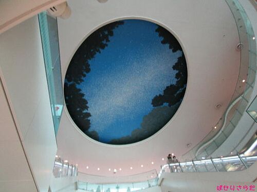 <お散歩日:2015/1/4> 東京の生家の新年会へ今年は一人で参加♪夕方までの暇つぶしのお散歩シリーズ♪ 羽田空港国内線第2ターミナル駅を見て回る♪その2。 第2ターミナル天井 マーケットプレイス吹き抜け部分の天井。夜の森の中の天の川なのだろうか? 青…