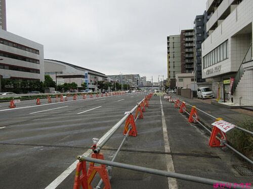 <お散歩日:2015/8/27> このところ、車線の切り回しがしょっちゅうある、ポートアリーナ付近。横断歩道の位置変更に伴う状況を見に行ってきたよ♪ ポートアリーナ前下り線 共同溝工事で分離帯側に寄せられていた車線が、歩道側に移動しました。 変電設備 C…