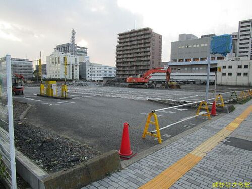 <お散歩日:2016/3/20> 建物取り壊し工事が終わった頃、通りすがりに建設の看板を発見したので、カメラを持って改めて現場を見に行ってきた♪ 国道駐車場入口付近 工事中、作業員の車が止まっていた部分。わざわざ舗装を残している。 日産方向 海側にマンシ…