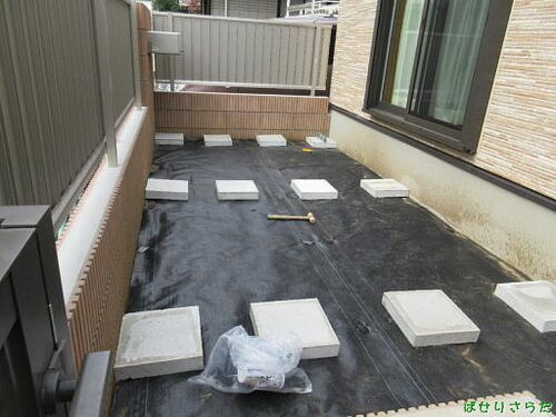<日付:2017/11/22> 広島建設セナリオハウスとは、別の会社に頼んだ、ウッドデッキ工事中です♪ 基礎の様子 防草シートを敷いてその上に施工します♪ 建設途中 この後、砂利敷きをしてデッキが完成しました♪ 現在完成していますが、忙しくて写真撮れません♪