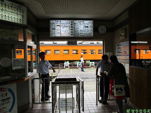 <日付:2014/8/31> 大井川鐵道たそがれ終電切符の旅♪ネットで切符の存在を知ってしまい、機関車トーマスも見たいので一泊二日での旅♪うたちゃんが生まれるまでは、余裕の一人旅していました♪その1。 改札口のようす すっかりトーマスの世界になっています…