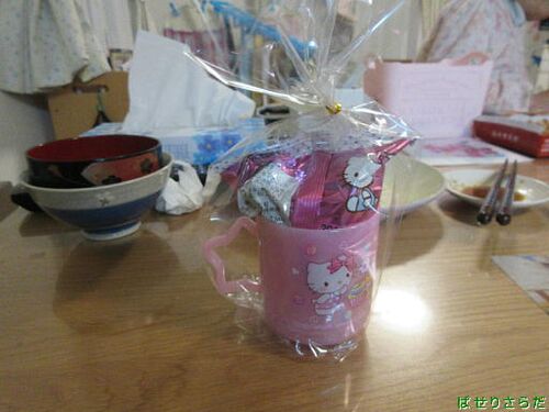 <日付:2019/2/15> 今年は質素なバレンタインデーです♪ママは胃腸炎のため、チョコ買えなかったそうです♪ ママプレゼント全体 ママプレゼント中身 キティちゃんのコップとお菓子です♪ おばあちゃんプレゼント外見 おばあちゃんプレゼント中身 コンビニチョ…