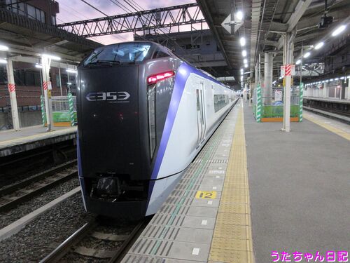 <日付:2020/1/13>富士急行線乗車が目的のお散歩♪ あずさ3号南小谷行きで大月駅まで行きます♪ E353系千葉駅にて 貫通型のすごいやつ♪常磐線系統と中央線系統は、新型が早く回っていてJR東日本が力を入れているのがわかります♪ 側面のロゴ 形式名をロゴに…