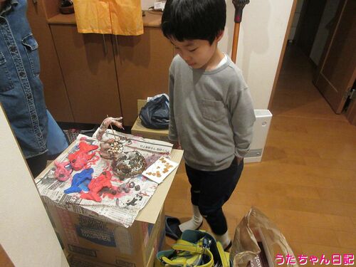 <日付:2023/3/29:20230329> お友達のおうちにママと遊びに行ってきました。粘土遊びをしてきたようです。 うたちゃんはお魚、お友達は、まきまきした蛇です♪お呼ばれがあって楽しそう。 片付けをしていたら、工作に使えそうな素材が出て来て使い道を考え…