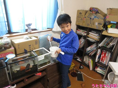 <日付:2024/9/30:20240930>うたちゃんは、小学3年生9歳男子です♪ 水槽の汚れを取っています 今回は、カメ水槽の水替え 夢中になってやっています 写真撮影はパパとママ♪ブログ作成はパパの担当です♪だいたい『うたくん』と呼ばれています♪生き物観察が…
