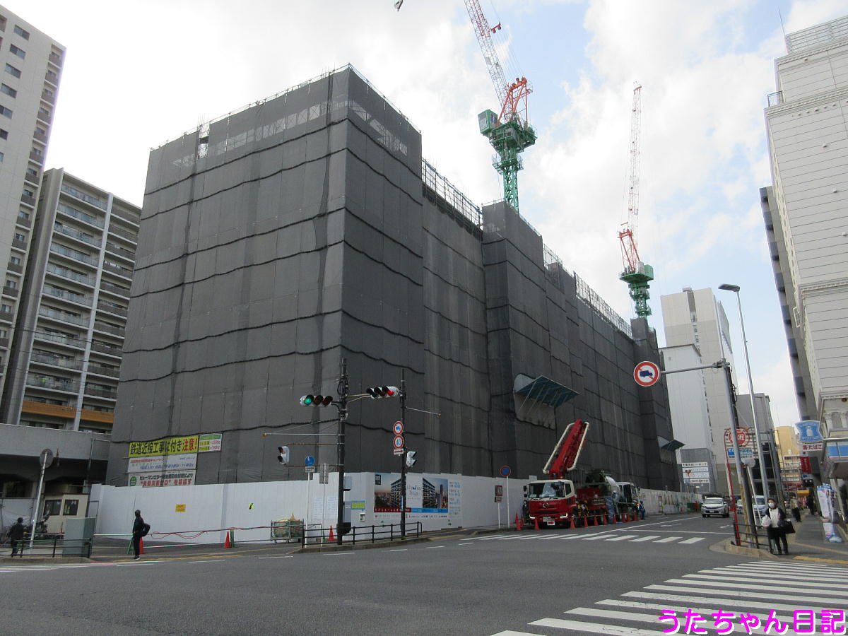 ミーオショッピングセンターの工事はあまり手つかずだが、高架下以外の部分、改築するのか網が掛けられている♪