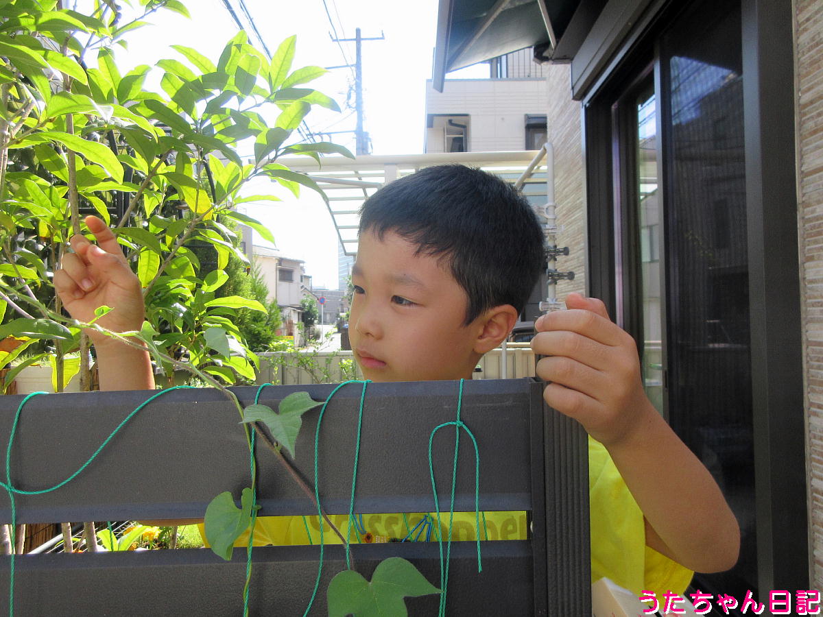 おうちのあさがお、うたちゃんより大きくなりました♪小学校でも育てています♪