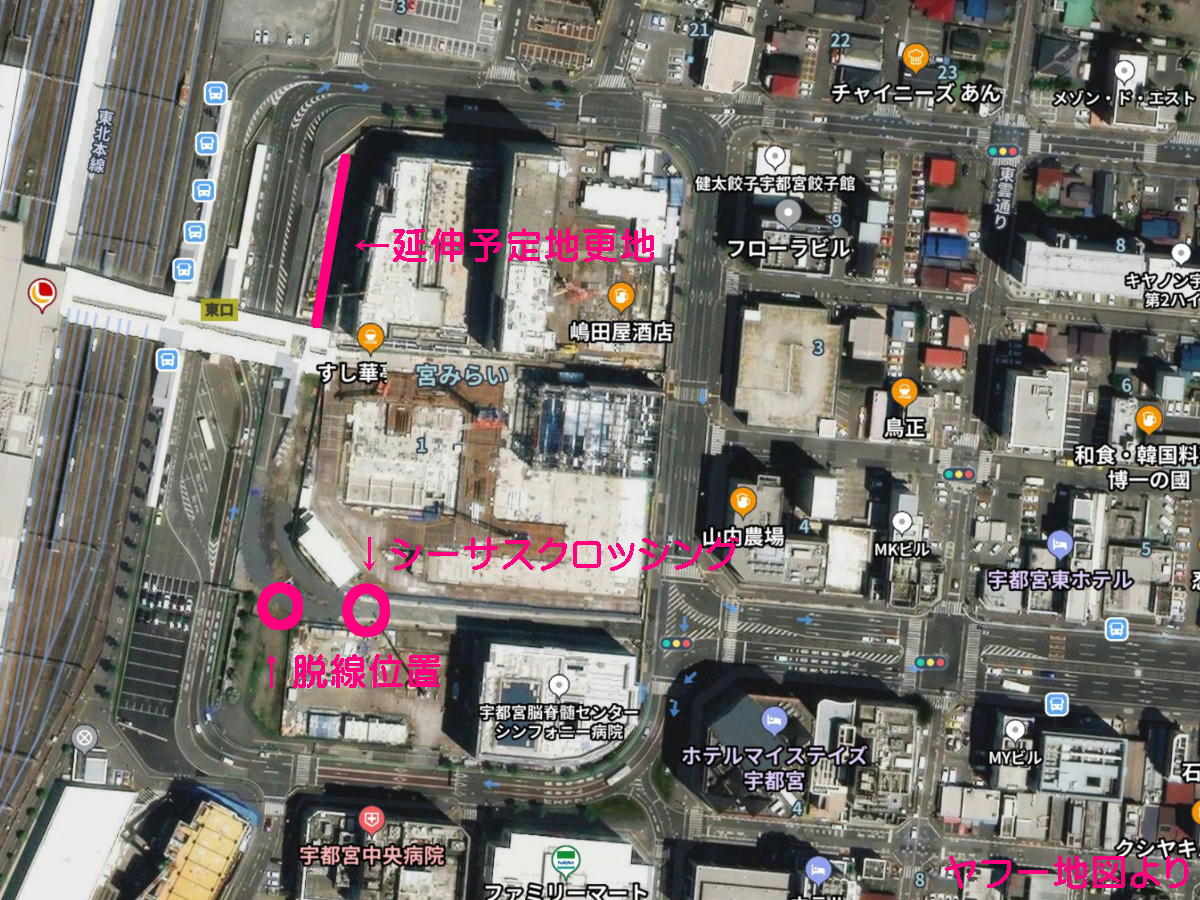 ・宇都宮LRTは、JR宇都宮駅西口方面に延長予定で、そのための用地があるので、そこで折り返す運転を行えばよい。