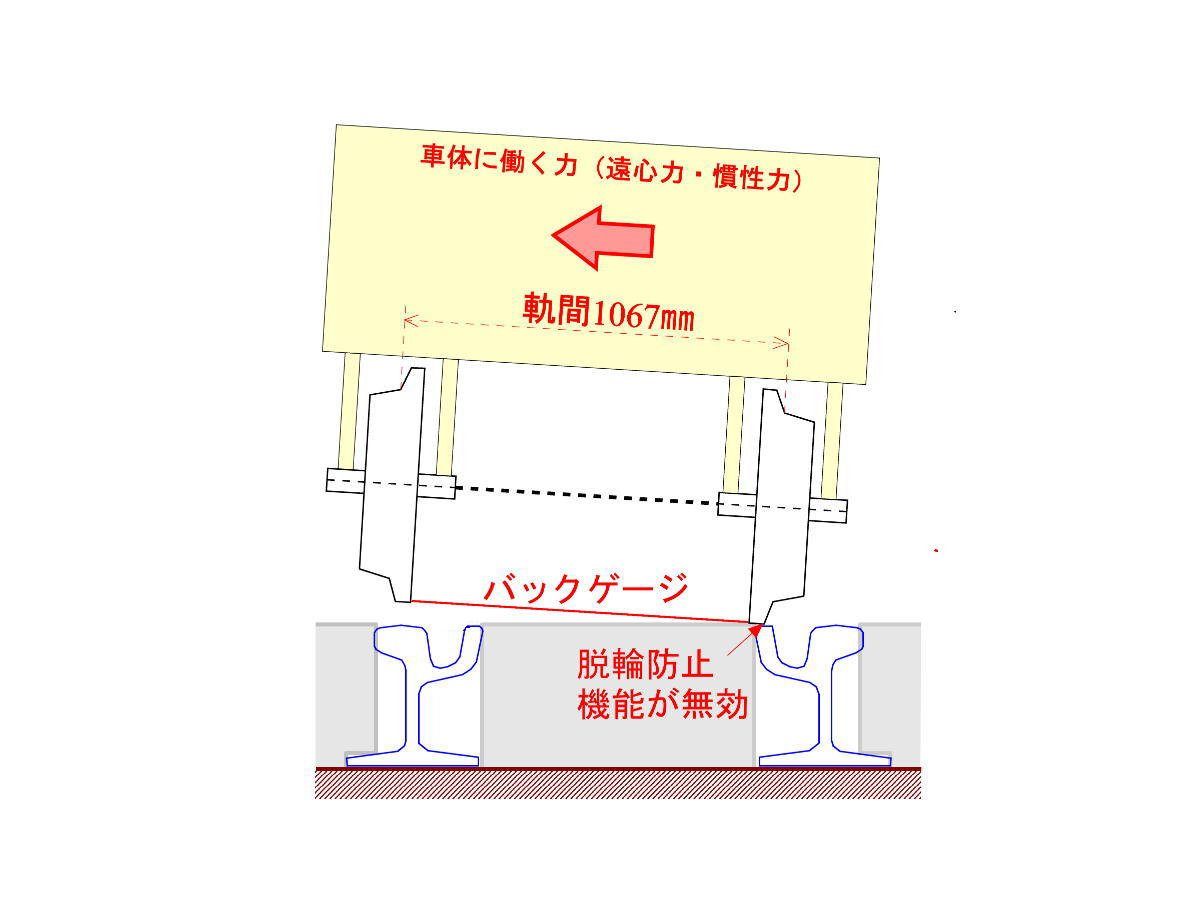 ・そもそも急曲線カーブを定速走行なので、『ゆっくり走ることを前提』にして、脱線防止措置程度しか想定していないのでは?