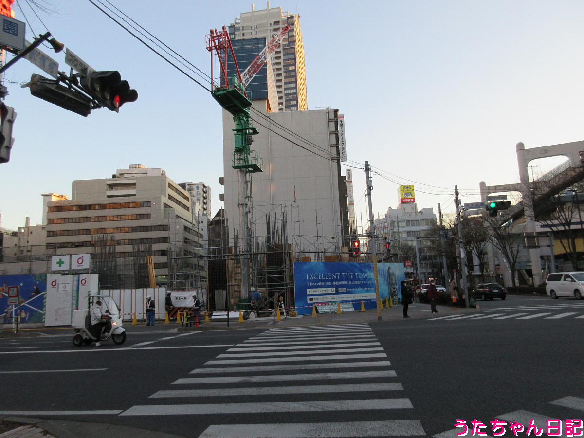 東電前交差点(再開発エリアが更地です)