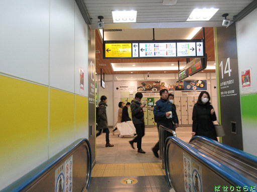 必要最小限のエスカレーター(他の駅で似たようなタイプを見ましたが、エスカレーター故障中は上下両方の作動を止め、片方を上下の階段とするみたいです。)