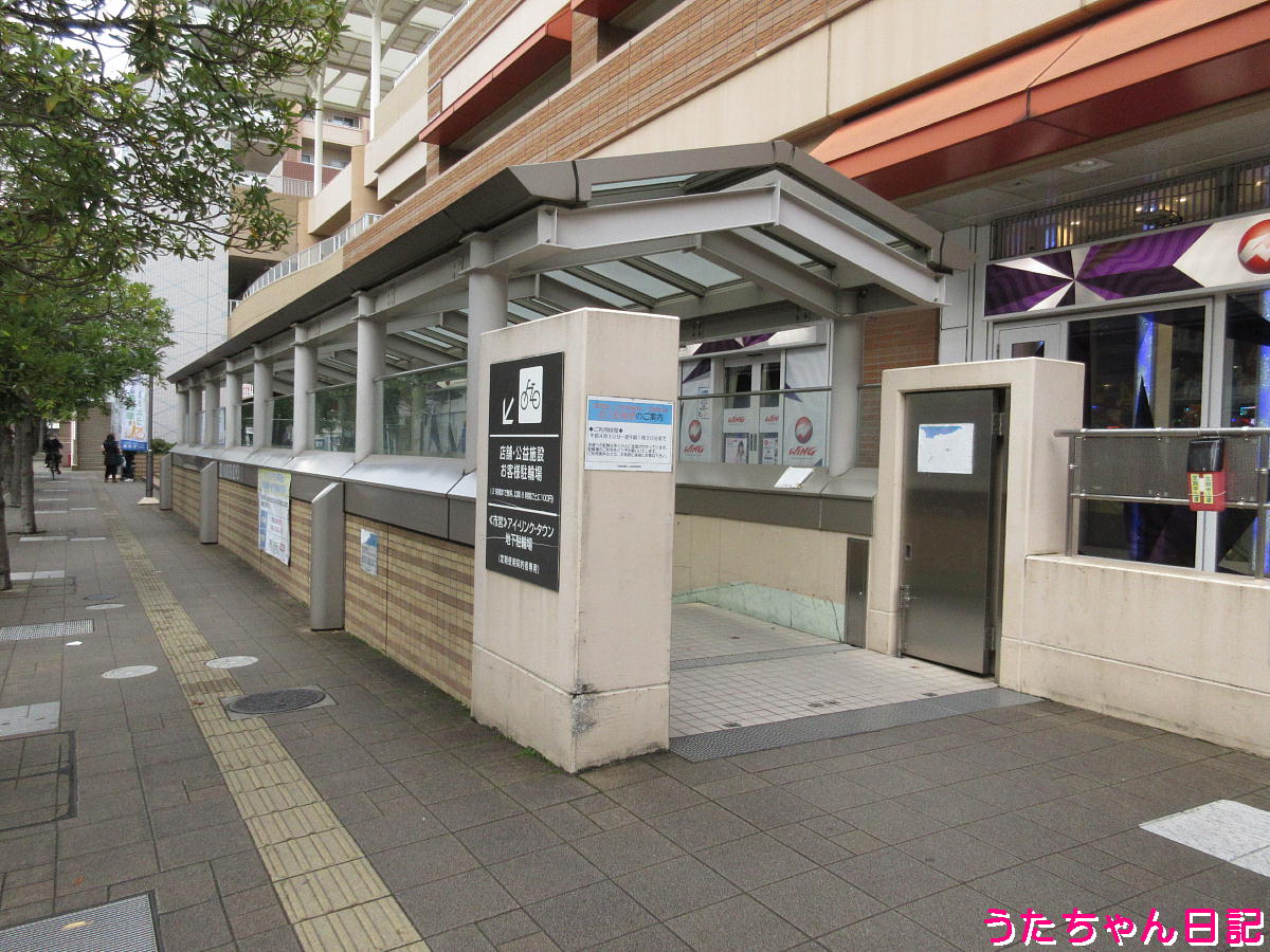 地下駐輪場スロープ横の歩道(違法駐輪が南口側は少なくて良い感じ)