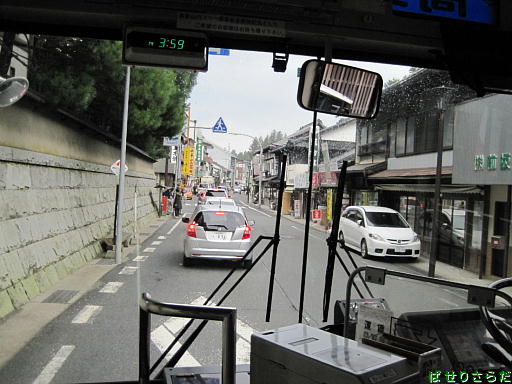 国道が直角に折れる交差点付近、大型バスはバイパスを通ってここまで