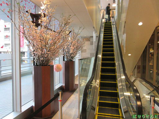 エスカレーター、さくらの飾りがオープンしたばかりだということを印象づけます♪