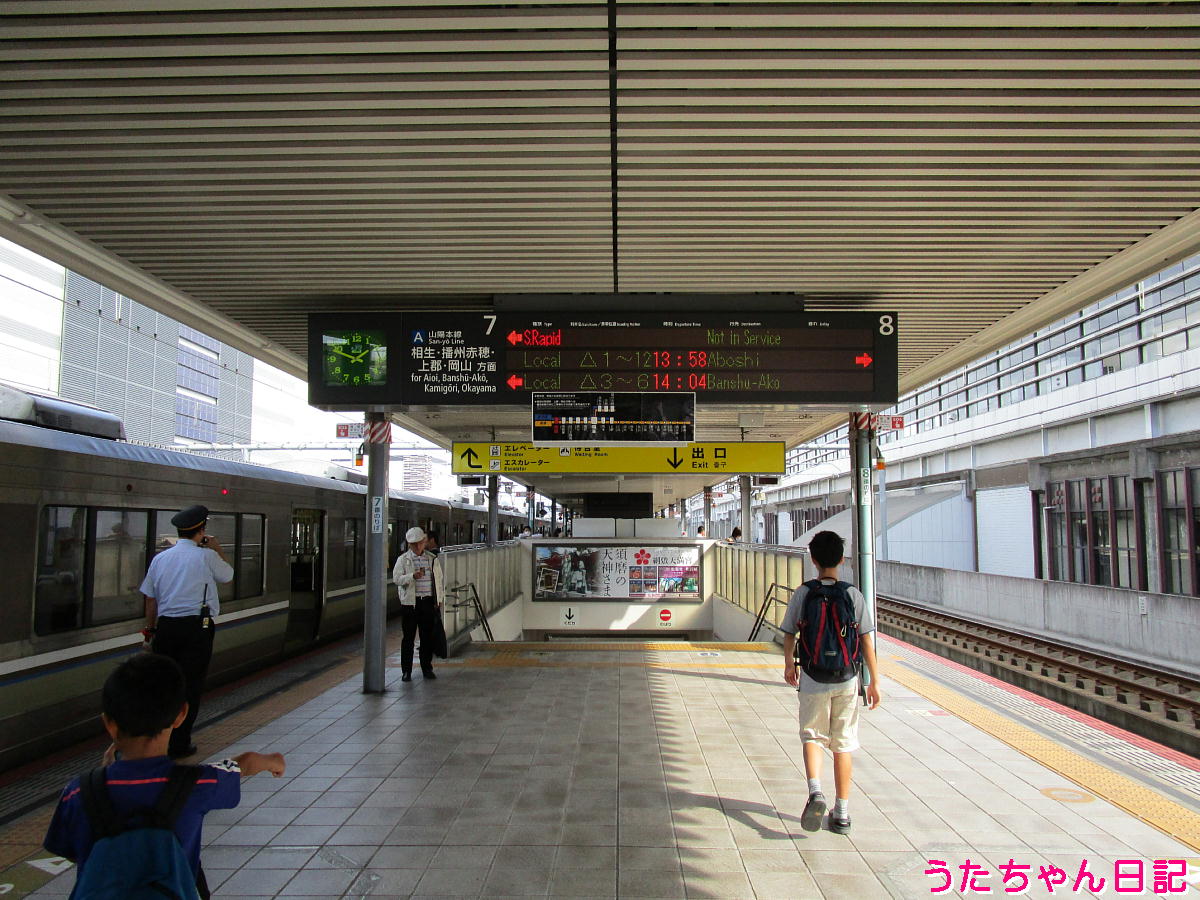 ほとんど姫路駅で降りてしまいます、山陽本線下りホームのようす