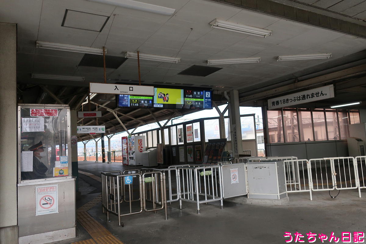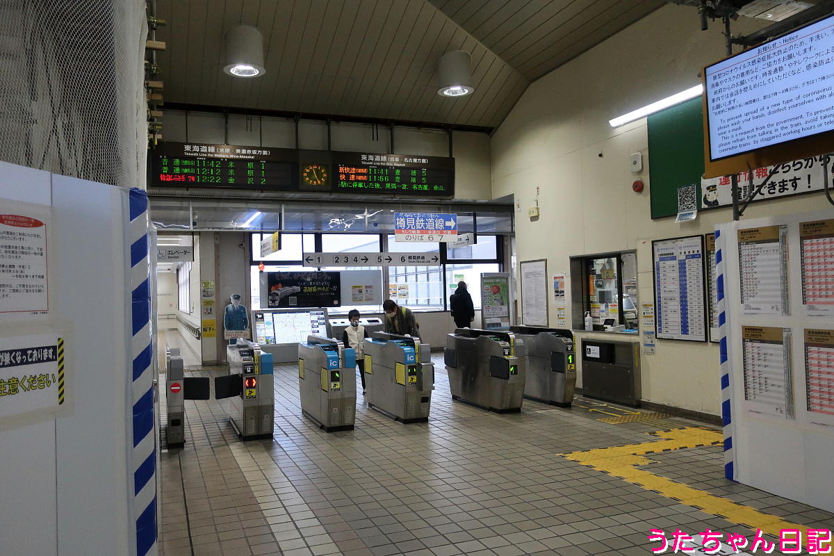 養老鉄道大垣駅改札口のようす(改札外から)右の青春18きっぷは通れませんは、JR線への乗換改札で、JR線側は自動改札を設置