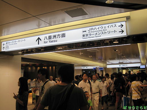混雑する東京駅一番街のようす、開業お祝い中のグランルーフより混雑?