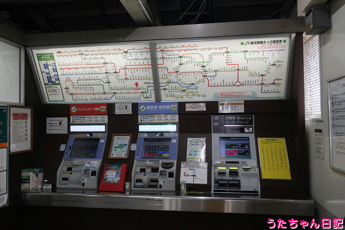 JR東日本管轄の篠原口自動券売機、それぞれに一長一短があって最低限の3台構成