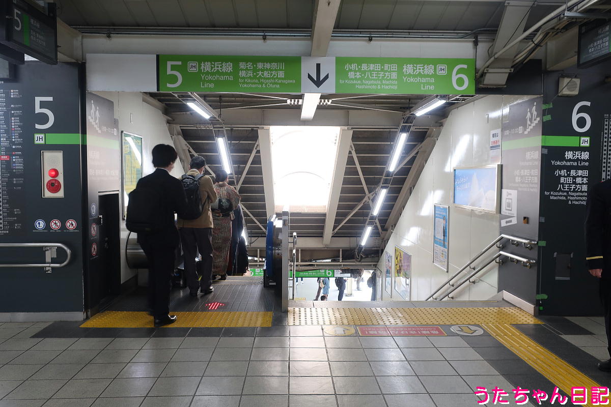 南改札から出て横浜線、新幹線、地下鉄線、北改札の順で回ります。
