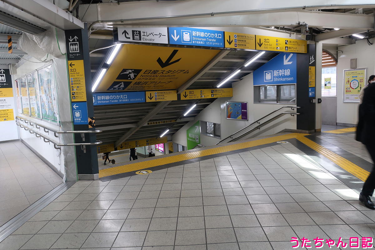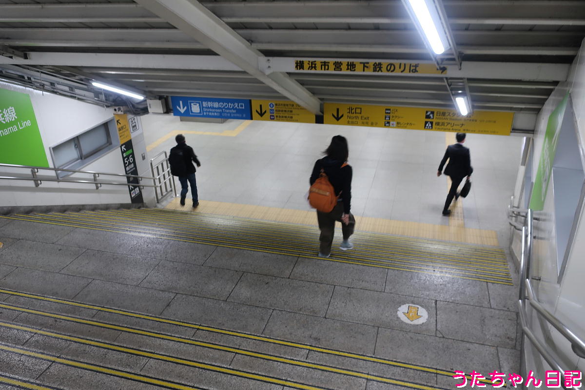 この階段が急なこと。どこの鉄道会社が仲が良いとか悪いとか別として、これだけ利用の多い新横浜駅新幹線側なのだから、地下直結の連絡通路とかがあっても良いのでは?