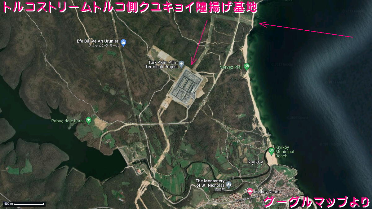 ロシア側は圧送するための施設が山の中にある。海辺には投光器みたいなのが衛星写真から見てとれる。地名で調べてもすぐには解らず。