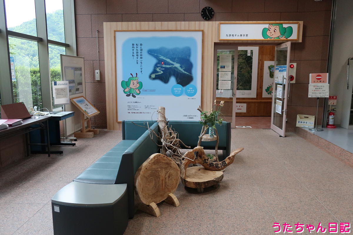 展示室エントランスのようす、ダムカードは内線電話で申し込む