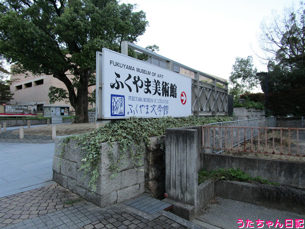 西一番ガード南交差点のようす。鞆鉄道の関係か調べていないが、この辺の道路は広くなっている(市営駐車場が三之丸駅跡とのこと)