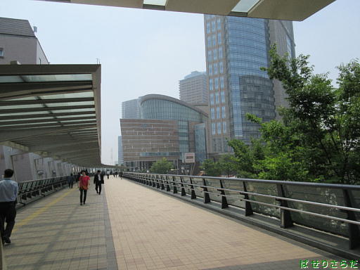 南西側の再開発エリアに続く高架デッキ、駅直結感はラゾーナ川崎にはかなわない感じ