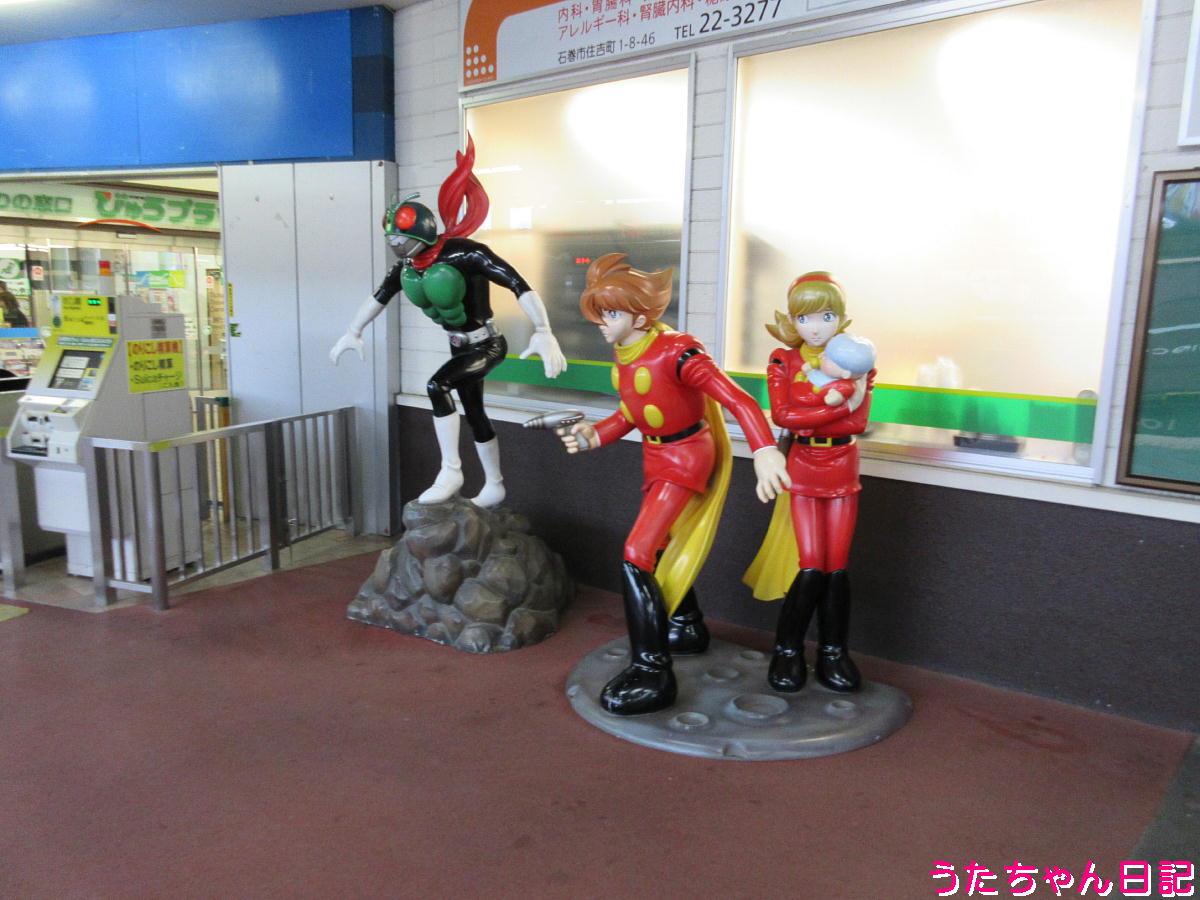 サイボーグ達がお出迎え、仮面ライダー、009、003、子供?