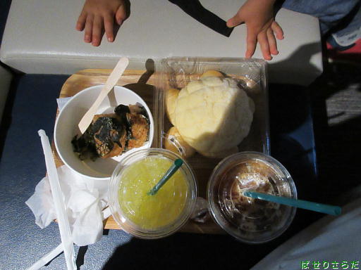 ペンギンカフェの外観、カフェでの飲食は、そこら辺の座るところで食べる感じになっています(座るところ不足気味)