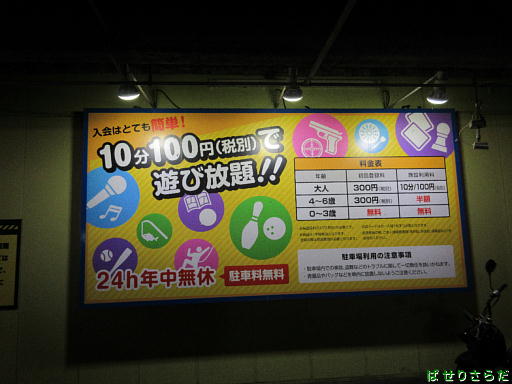 料金表、短時間では安いのだが、希望の遊び場所の予約を取るまで館内で待つ必要があり、それにも課金されるのが残念だったところ