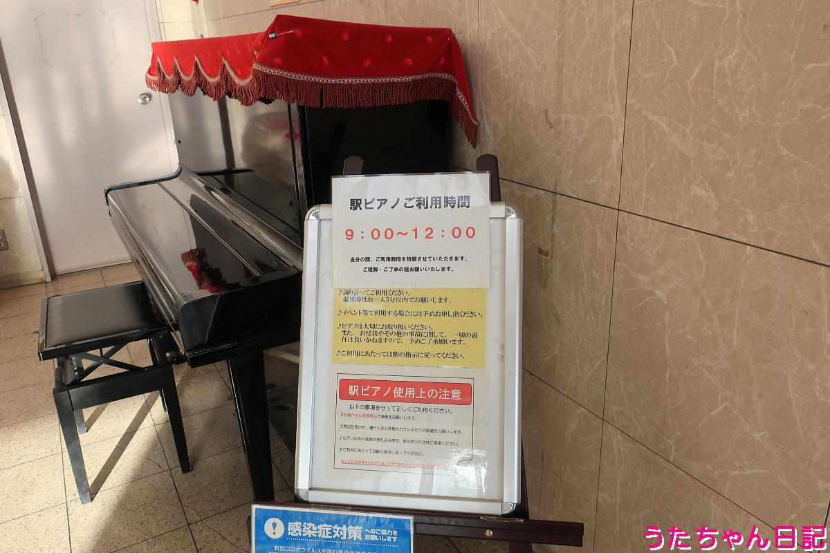 1階のホームへ。やはり階段の向きが線路に落ちる方向のためか、階段前に網が貼ってある。