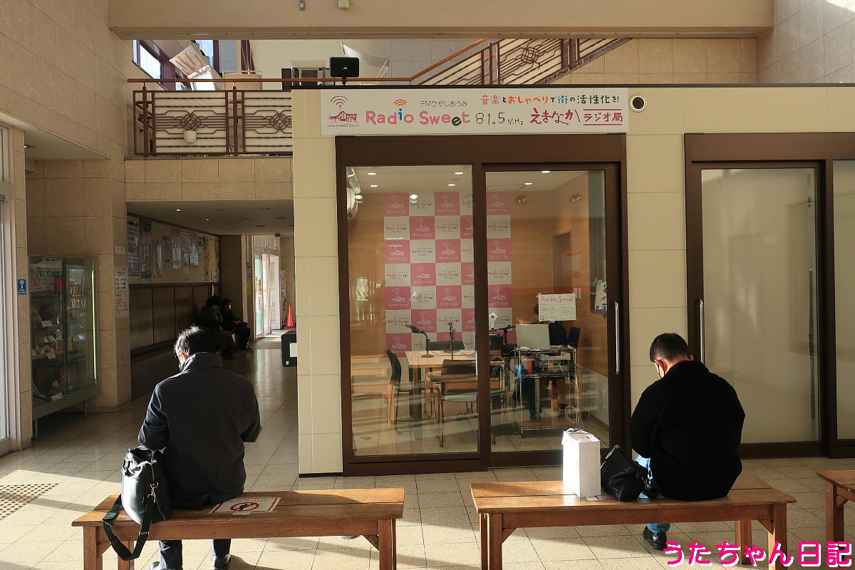 駅待合室の一画には、Radio Sweet(ラジオスイート)FM放送局のスタジオ、コミュニティFMの組合JCBAには加盟しておらず、ListenRadioでストリーミング放送をしている