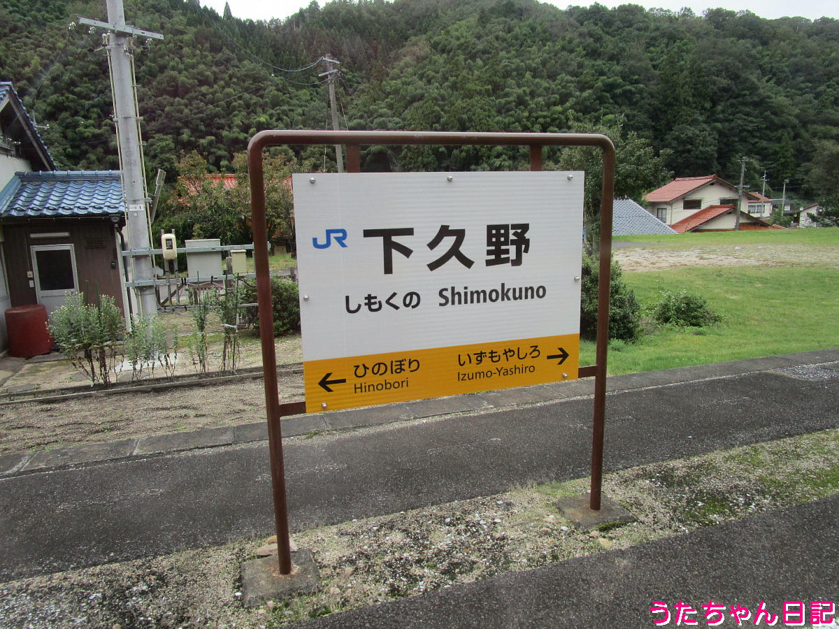 出雲大東駅のようす(いずもだいとう)、三江線も木次線も思い切りの良くない、待ちを舟運時代の全部通すようなルートが、自動車トンネルでショートカットされるようになって、不合理。