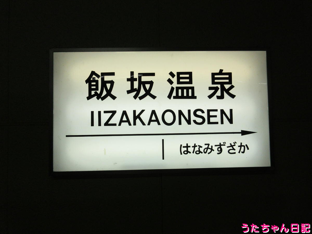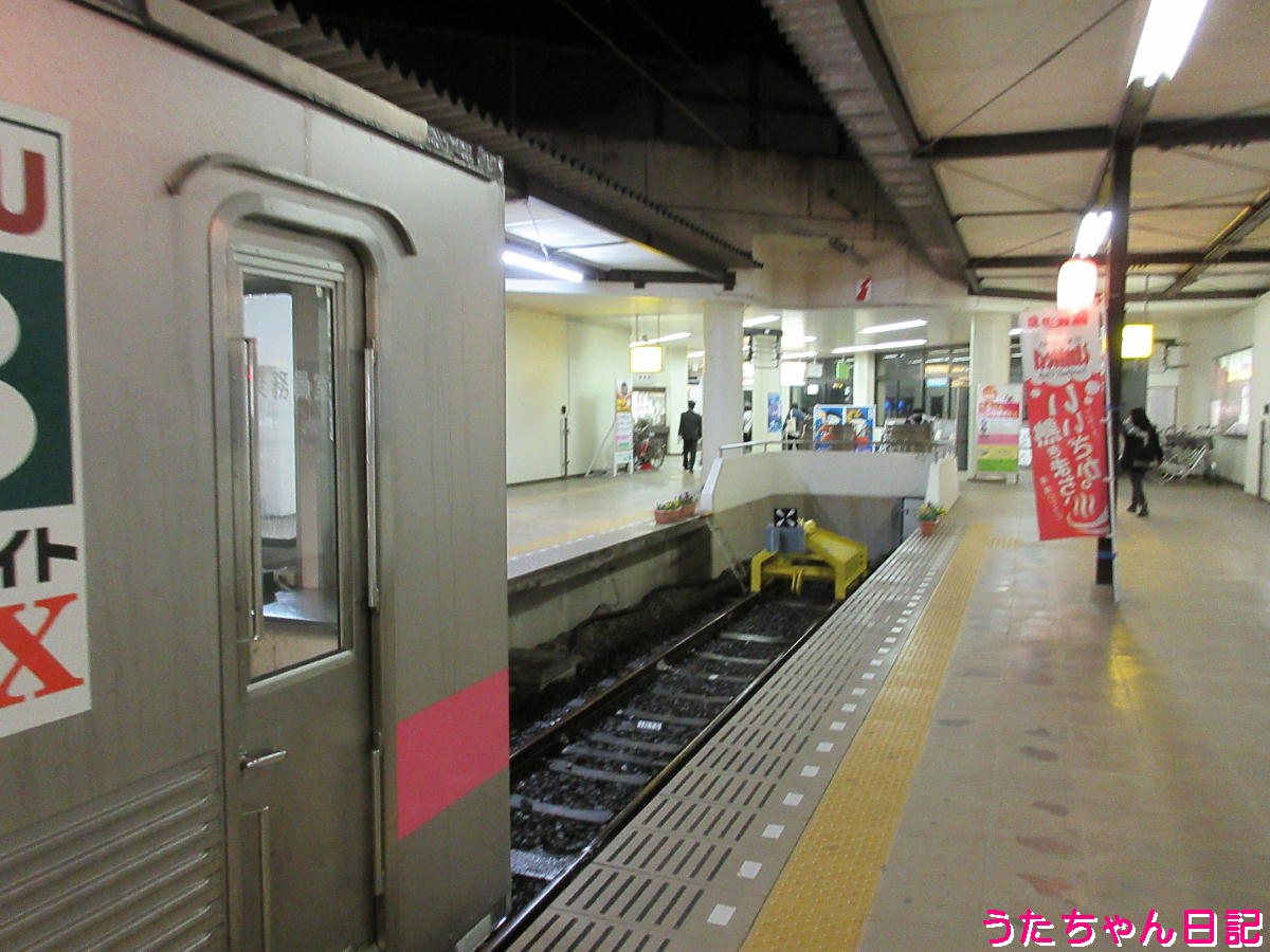 飯坂温泉駅に到着した電車のようす、結構終点まで乗り通している