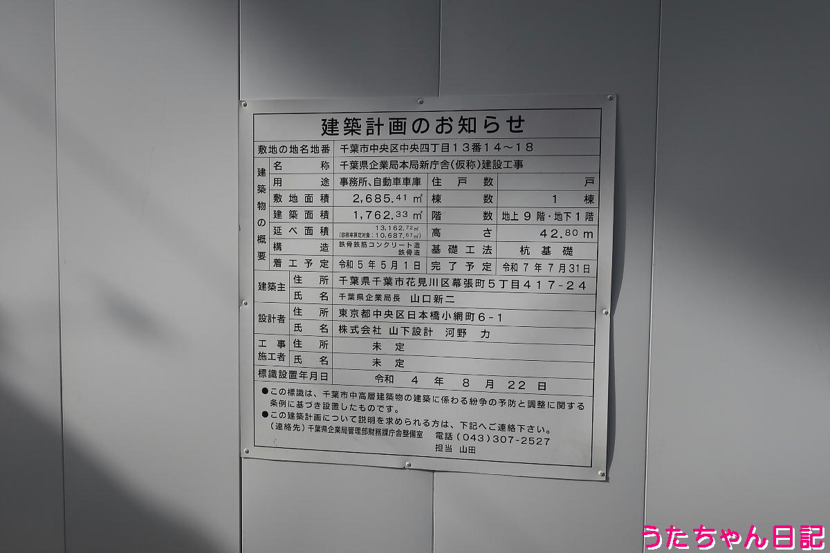 2023-11-18 最終更新日 2023-11-20 千葉県企業局本局新庁舎建設工事♪(2023年4月、新都市ビル跡地、元々旅券事務所パスポートセンター、千葉県千葉市中央区中央) 11◆お散歩日記 11◆お散歩日記-01◇千葉県 11◆お散歩日記-01◇千葉県-01■千葉市 13◆目的地別 13◆目的地別-15◇街の記録商業 13◆目的地別-16◇街の記録工事 13◆目的地別-21◇公共建築 <日付:2023/4/14:20230414-02> 千葉県庁の羽衣橋付近からお散歩開始、新都市ビル跡地の企業局の建物の工事を観察 千葉県企業局の建築計画のお知らせ 読売新聞千葉支局跡にセブンイレブンがオープン。読売新聞は右に移転 見える所から、工事を観察、とりあえず地下の部分を撤去でしょうか 別の角度から 郵便局側から観察 千葉中央四郵便局の隣は行列の出来るラーメン店 BooBoo太郎の並び方のお知らせ 音にこだわるマニアな音響機器販売店、オンケン http://www.onken-audio.co.jp/