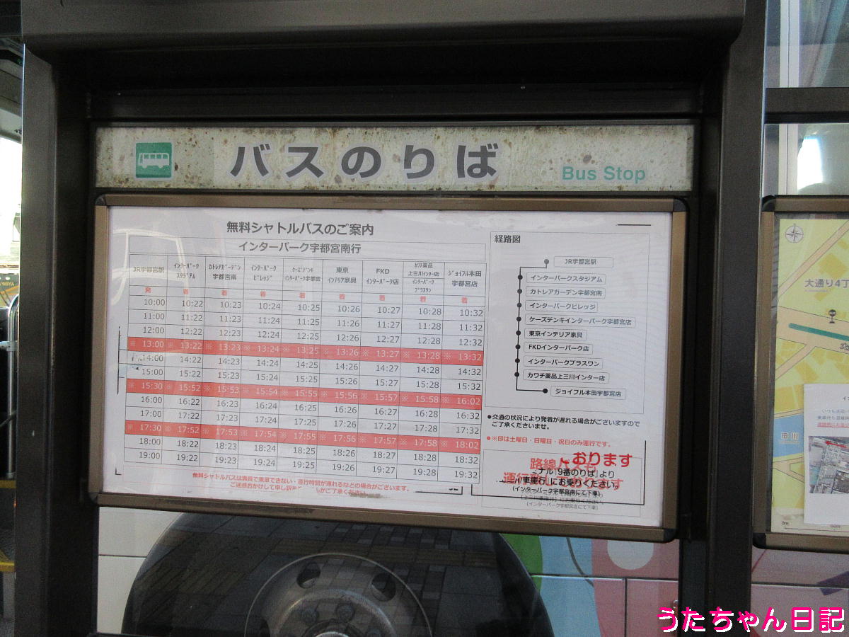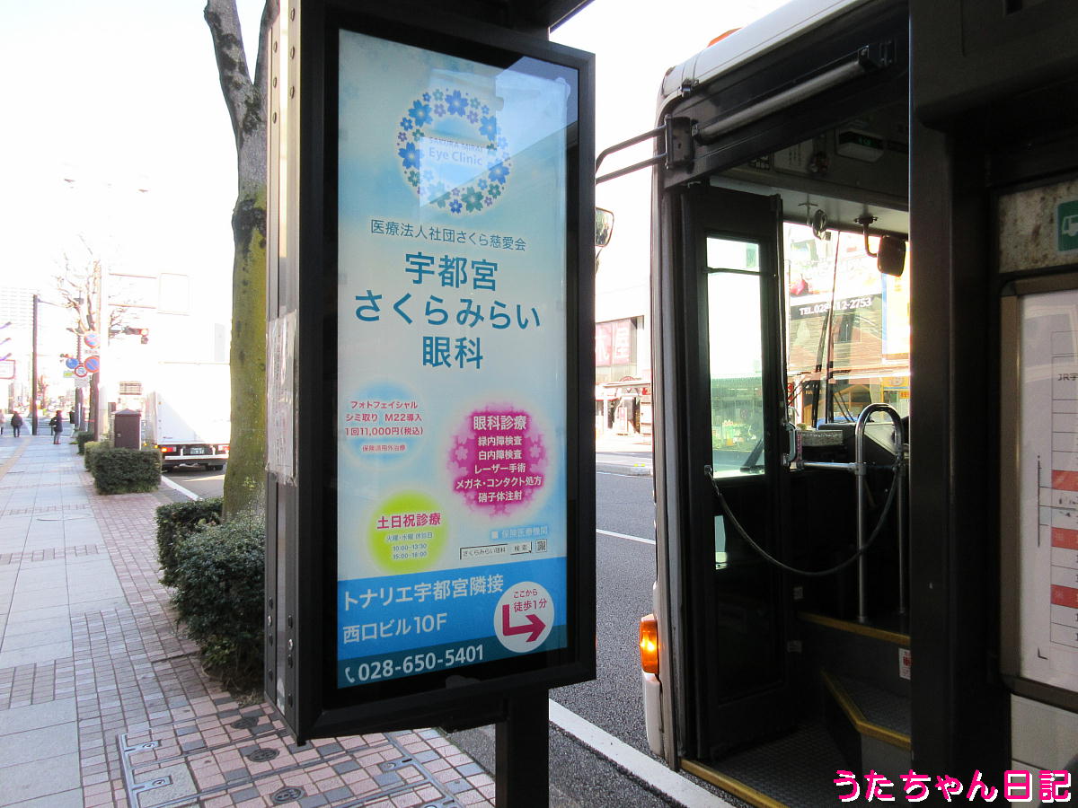 宇都宮駅西口の良いポジションにある、インターパーク宇都宮行き無料バスのりば
