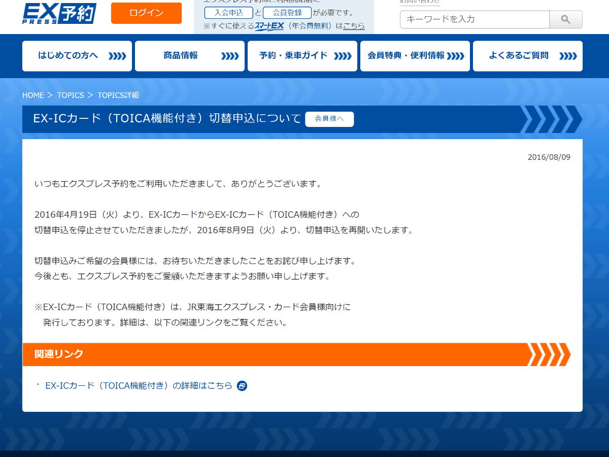 【EX-ICサービス改訂】のお知らせが気になっていたので、色々チェックしていみた