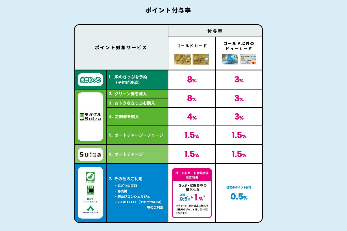 首都圏のJRユーザーが多く加入していると思われるビューカードのポイント付与率表