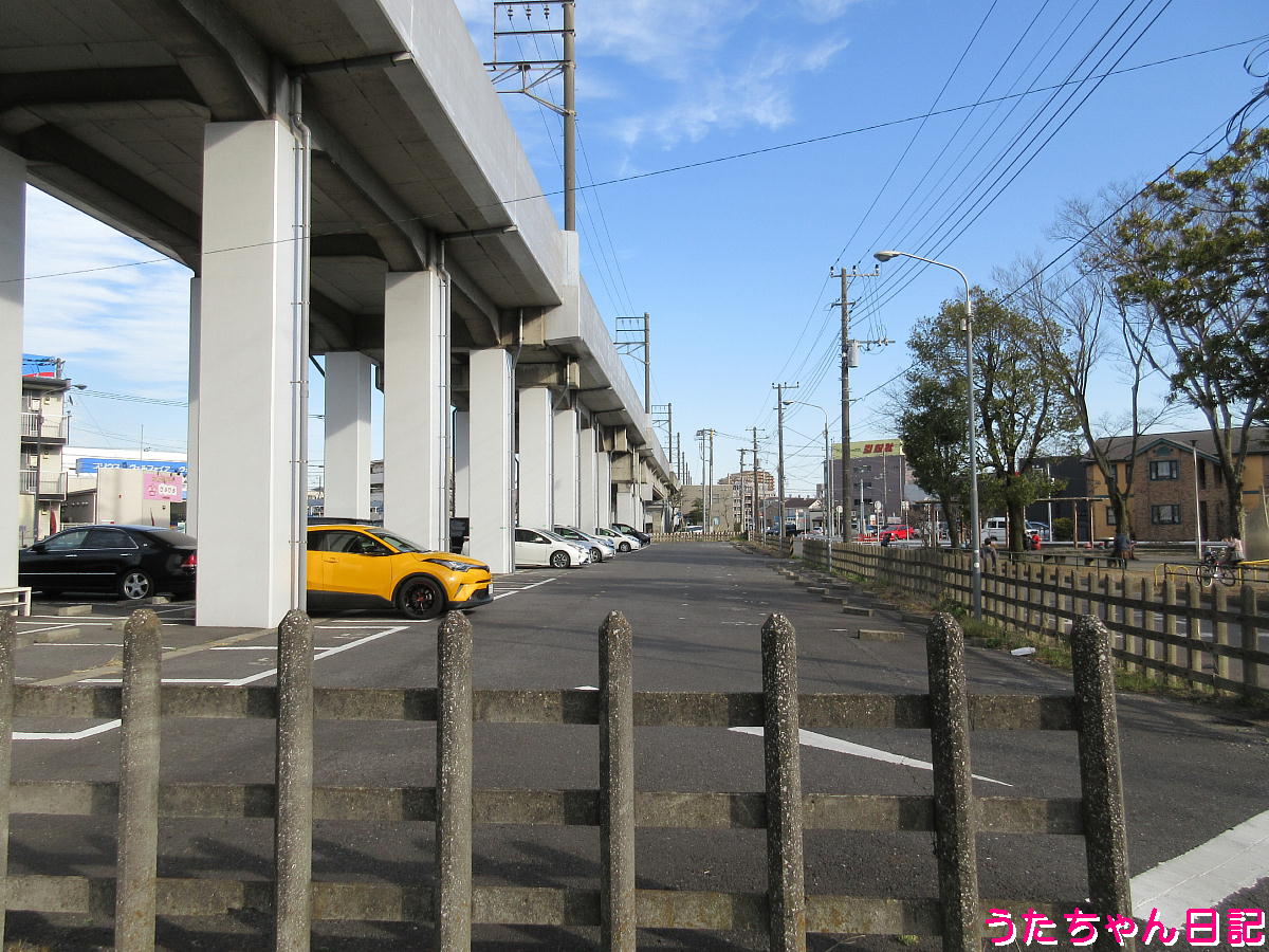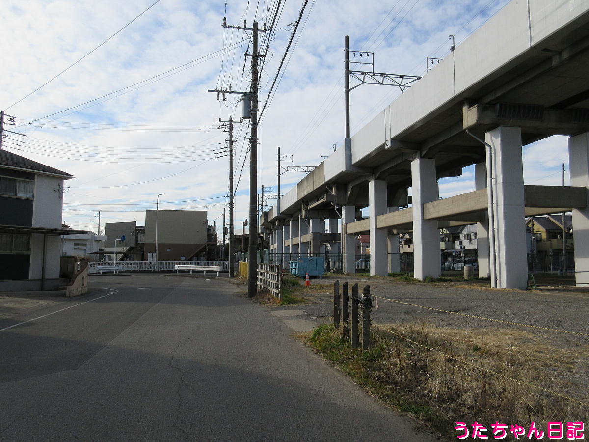 線路南側西向き、幹線街路の片方を構築出来るぐらい広いスペース、昭和30年代は、大網街道のバイパスをどうするか迷いがあったのかも知れない。未だ旧外房有料道路(大網街道のバイパス的な道路)は、有料期間が終わっても湾岸線に接続出来ていない。