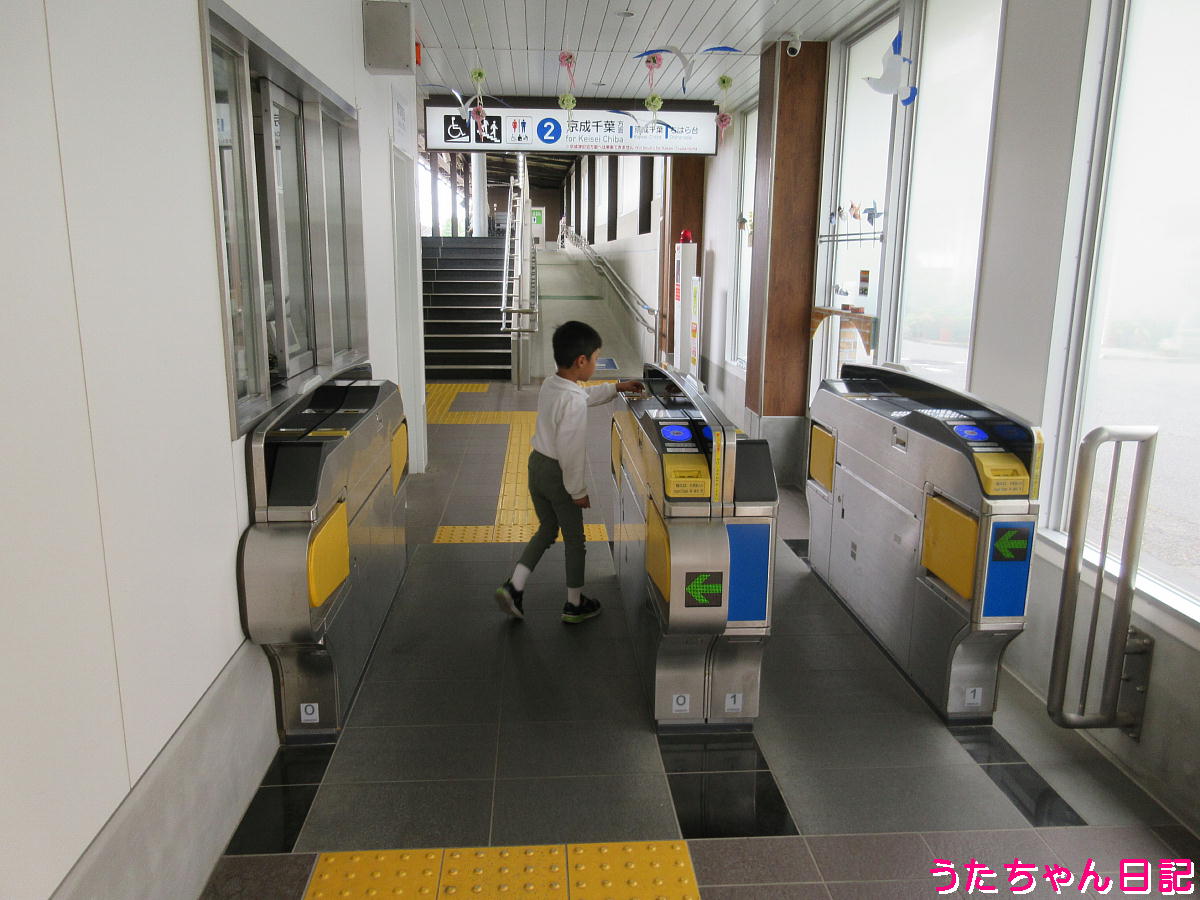 小児切符初体験のうたちゃん。突然の電車乗車で小児用Suicaを持ってきて無いので、自動改札切符投入初体験。