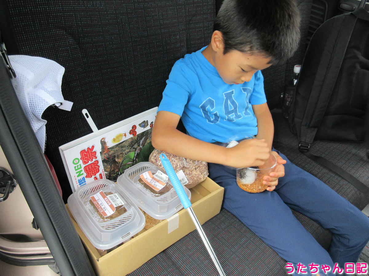 道の駅あずの里いちはらにて、ずっと待っていた昆虫を購入、カブトムシ2匹とクワガタ3匹です