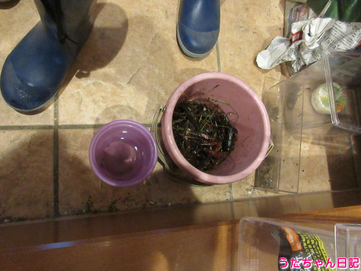 近所の親子さんから、ザリガニ釣りスポットを教えてもらい、さらに釣り道具ももらって、ザリガニを駆除