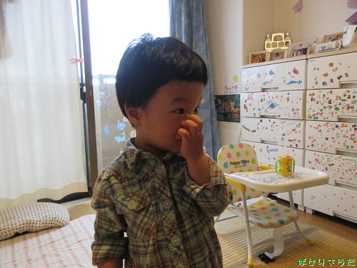 お鼻かゆい、パパと似て鼻炎の気があるようです♪
